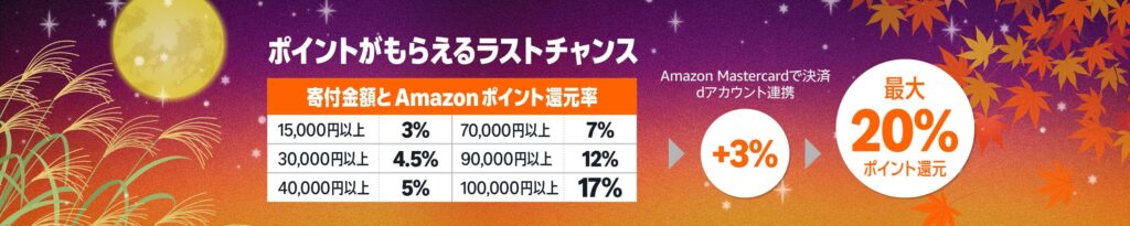 Amazonでのキャンペーンは寄付額に応じてポイント還元