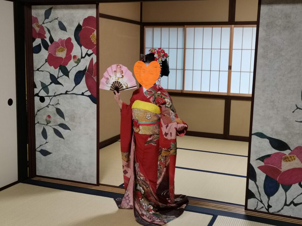 お化粧し、かつらを被り、着物を着て、プロの写真撮影。(スタジオアリスみたいなノリ。)