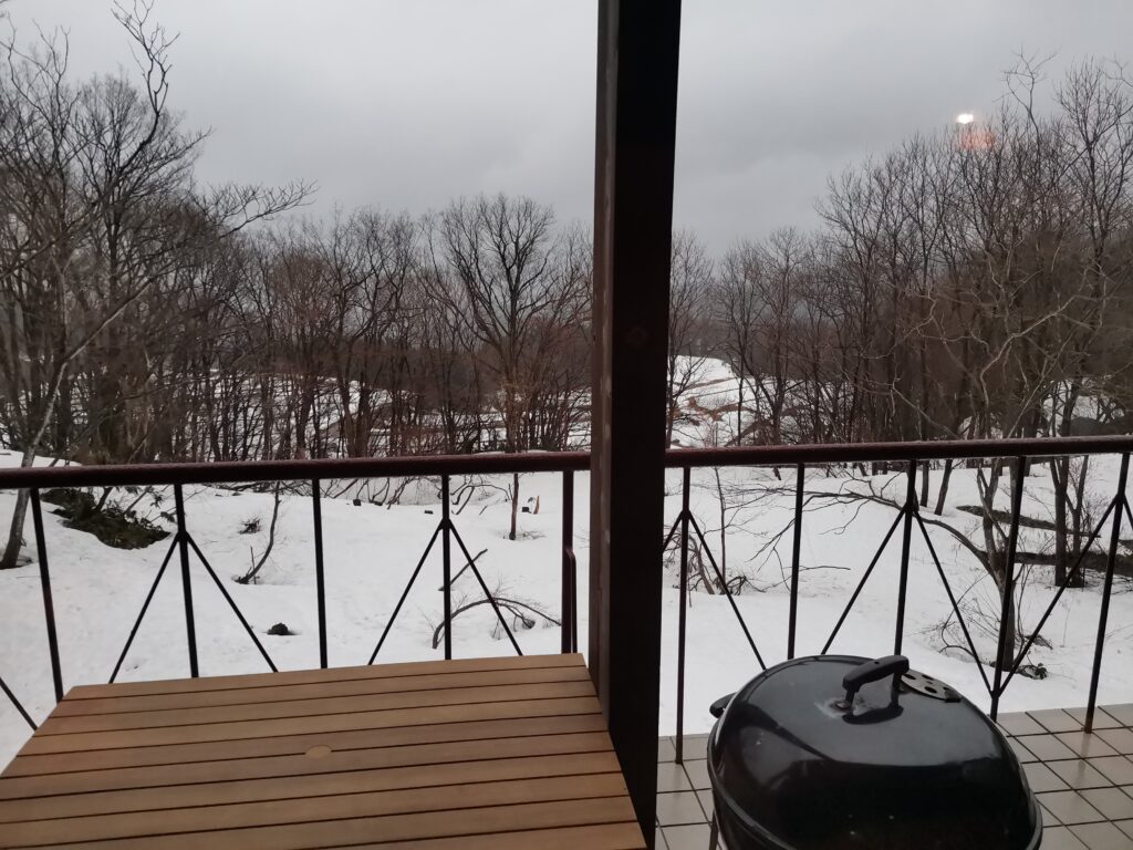 3月下旬で、道路は除雪されていましたが、コテージ一帯の畑や山には雪がまだ積もっていました。