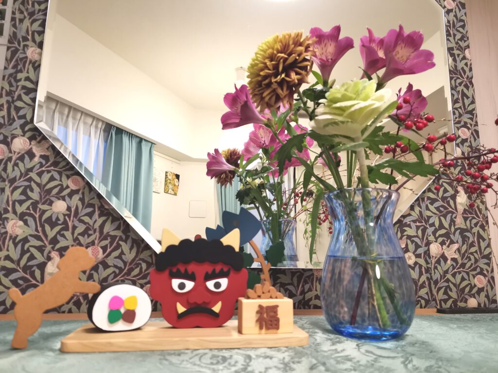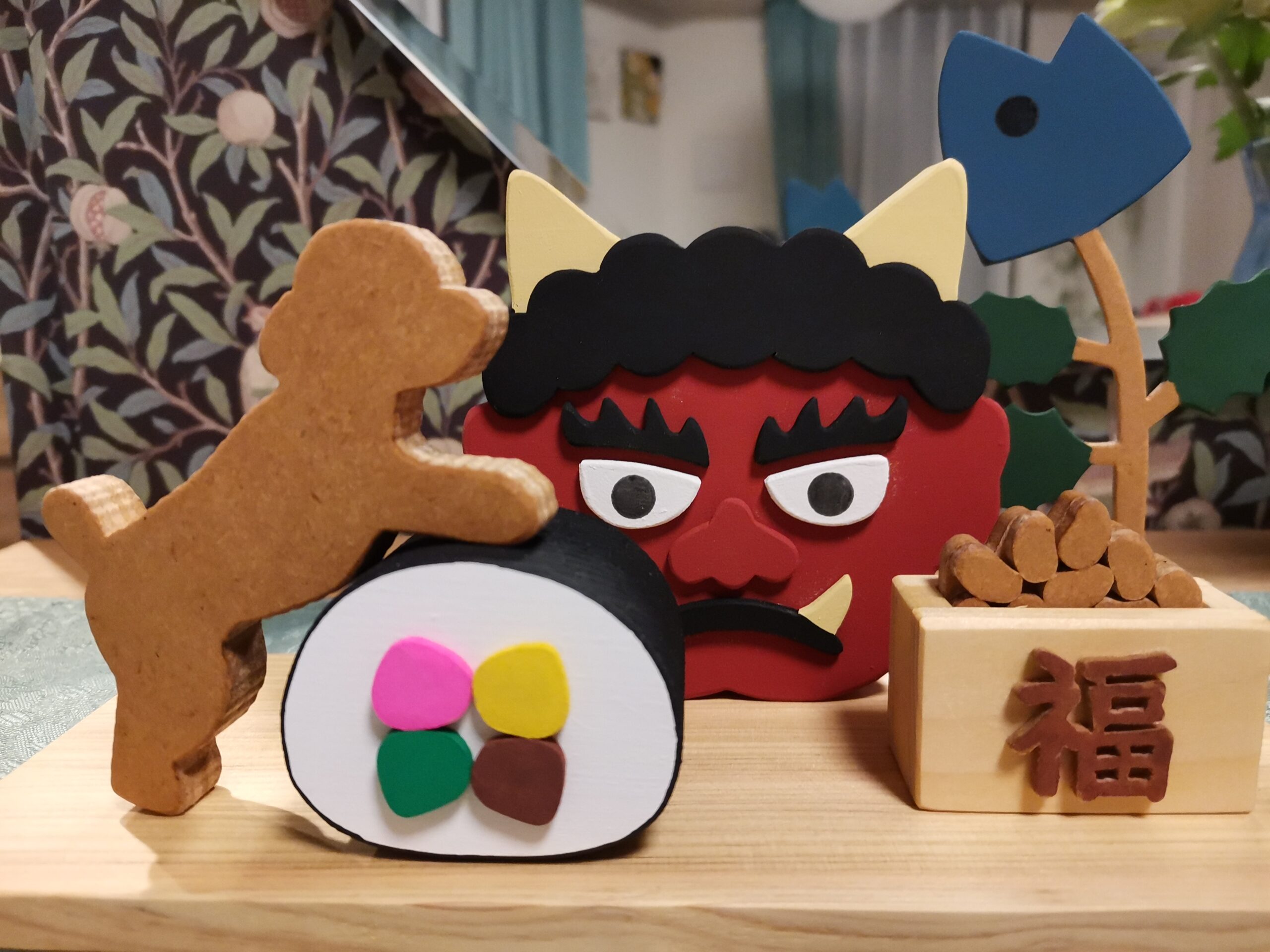 今、我が家で飾っている節分飾りはCreemaというハンドメイドのサイトで購入した節分飾りです↑