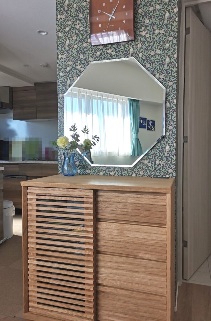ミラーのお陰で明るくなりましたし、実用面でも姿チェックでき助かっています。