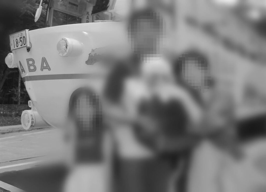 山中湖では、観光用「水陸両用バス」があるとのことだったので事前予約して乗車しました↓