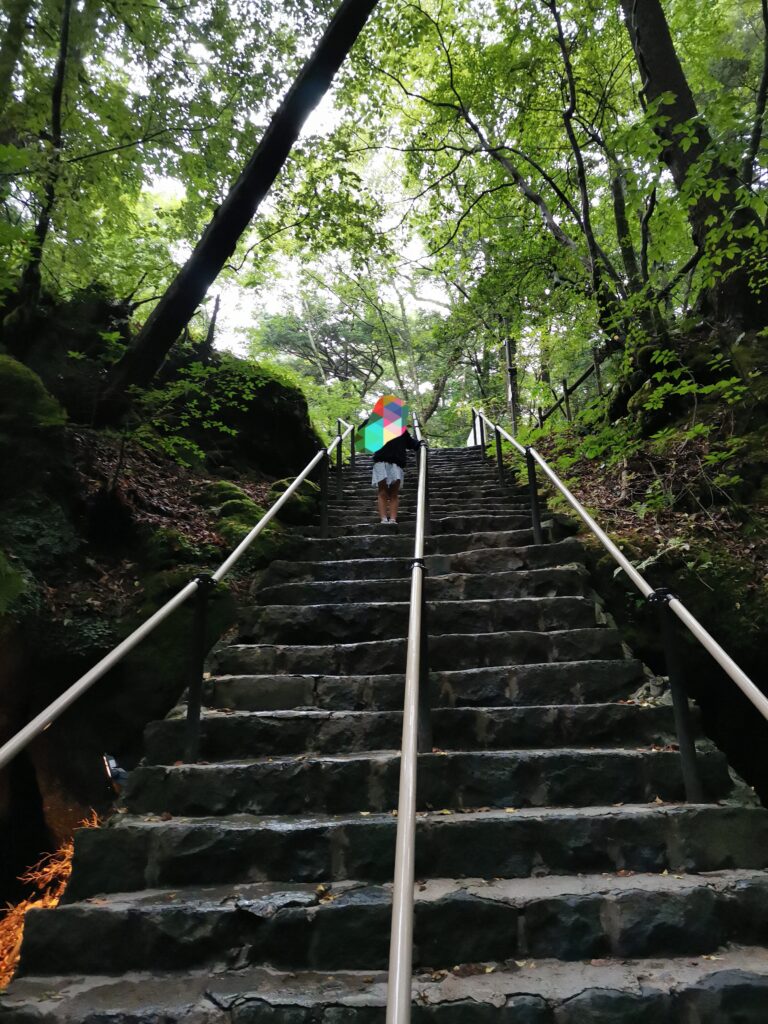 穴へ下るための急な階段があるほか、洞窟内は濡れた岩面を歩かねばなりません。