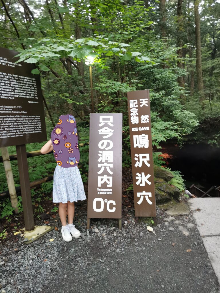 今回の旅行では、富士山の噴火によってできたという「鳴沢氷穴・風穴」という洞窟に行くのを楽しみにしていました↓