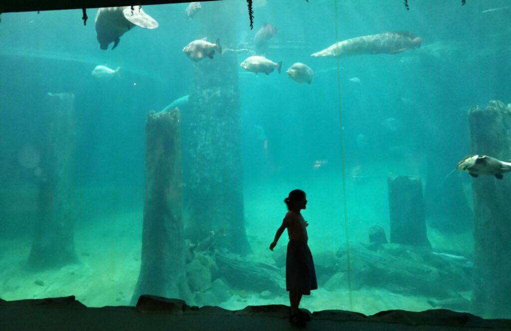 日本でいう「水族館」のイメージと違い、広い園内の真ん中に川が流れ、その周りに主として水生生物が展示される形。