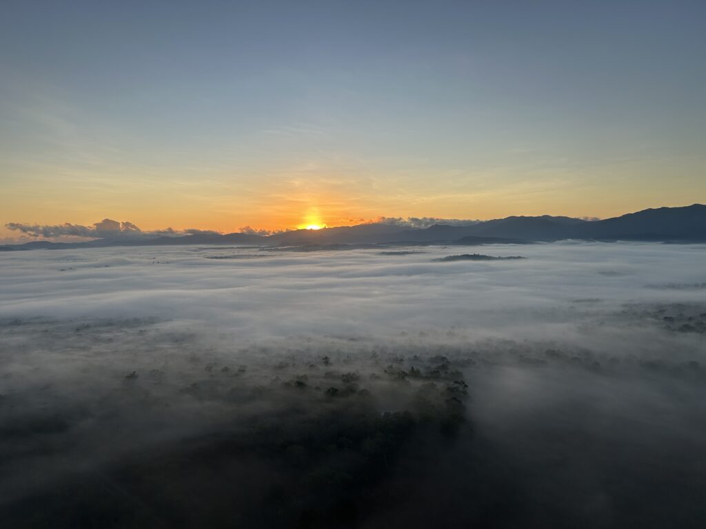 実際に浮上して無問題と言われた意味が分かりました。霧の上の高さまで熱気球で抜けることができるのですね。(↓写真は6:20です)