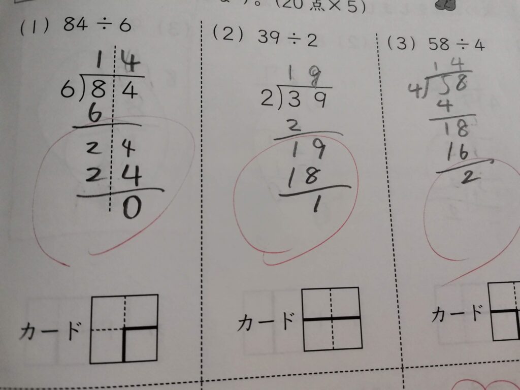 割り算の「筆算」と言うものに全く慣れておらず、授業中混乱したまま帰宅しました。