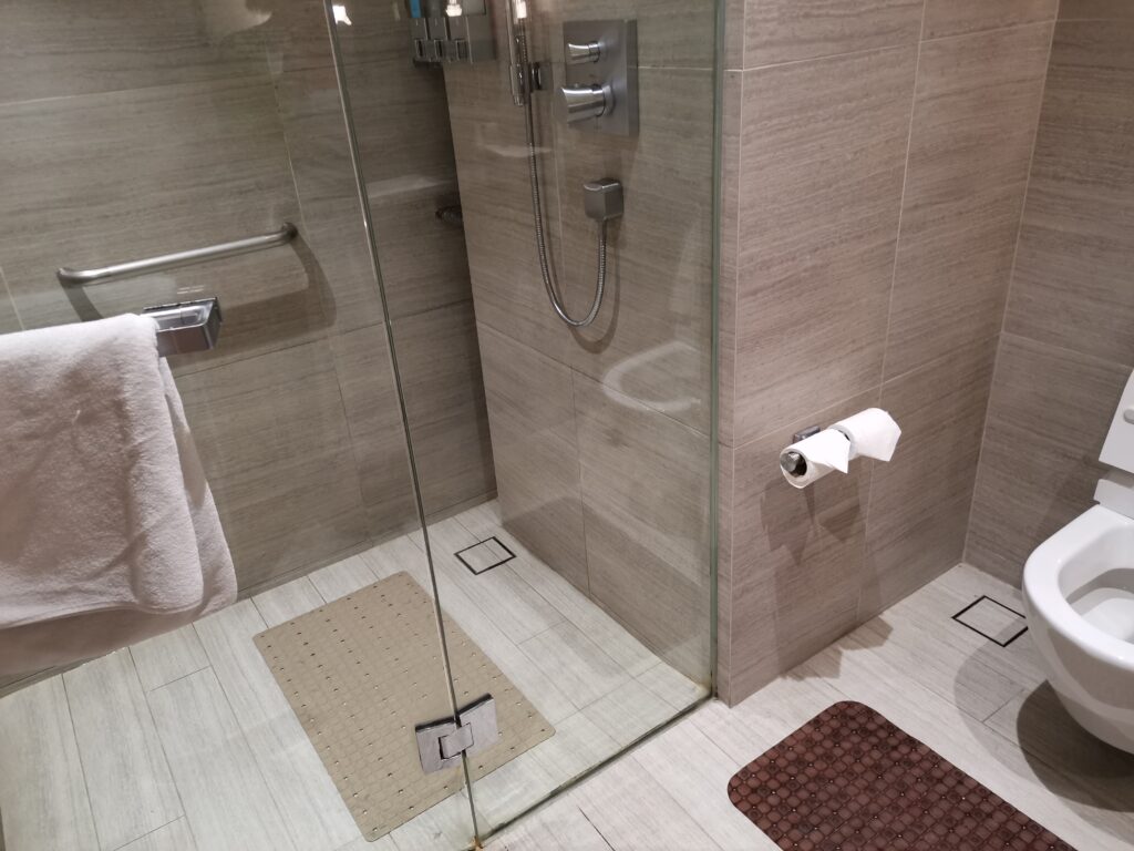 フード、お菓子、軽食も自由に頼め、清潔な時間制シャワー室も込みでしたから、十分だと思います。