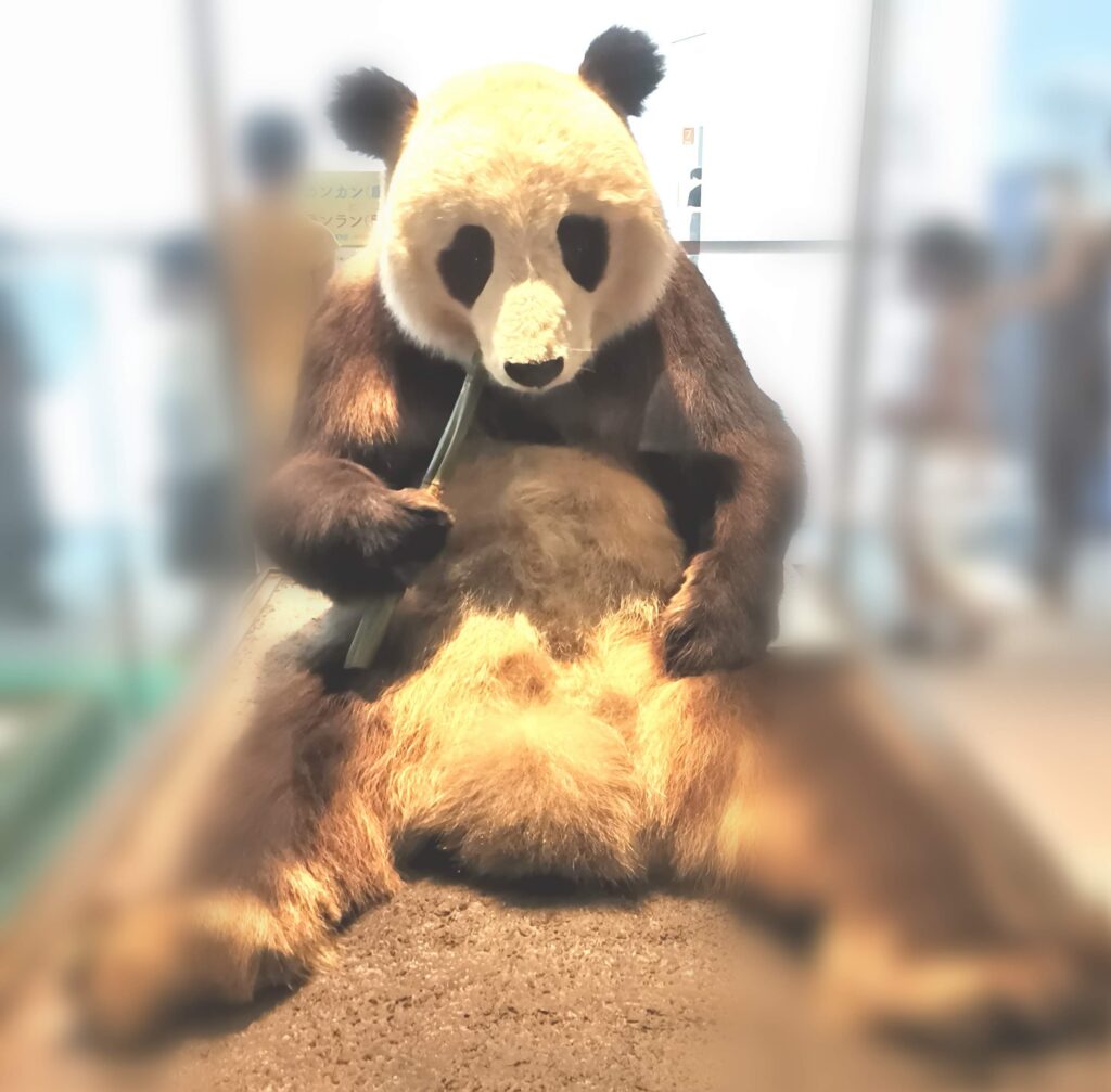 劇場内ホワイエには、国立科学博物館から借りて来られたパンダ(カンカンとランラン)とトキの剝製も展示されていました↓