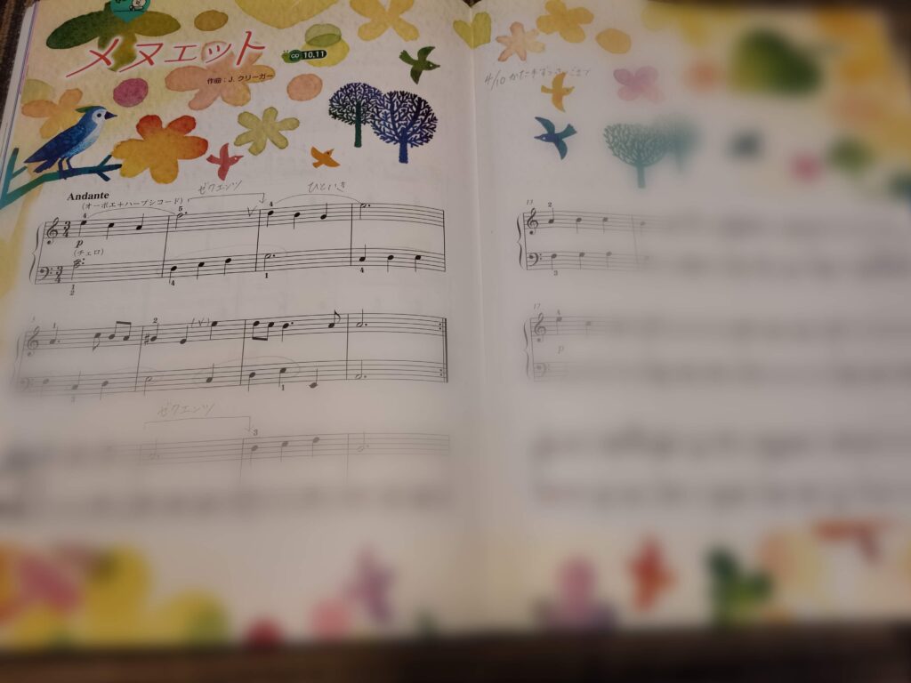 花子がどれを選ぶのかな?と思ったら、「メヌエット」を選びました。楽譜だけみると比較的シンプルに見えるからだと思います。