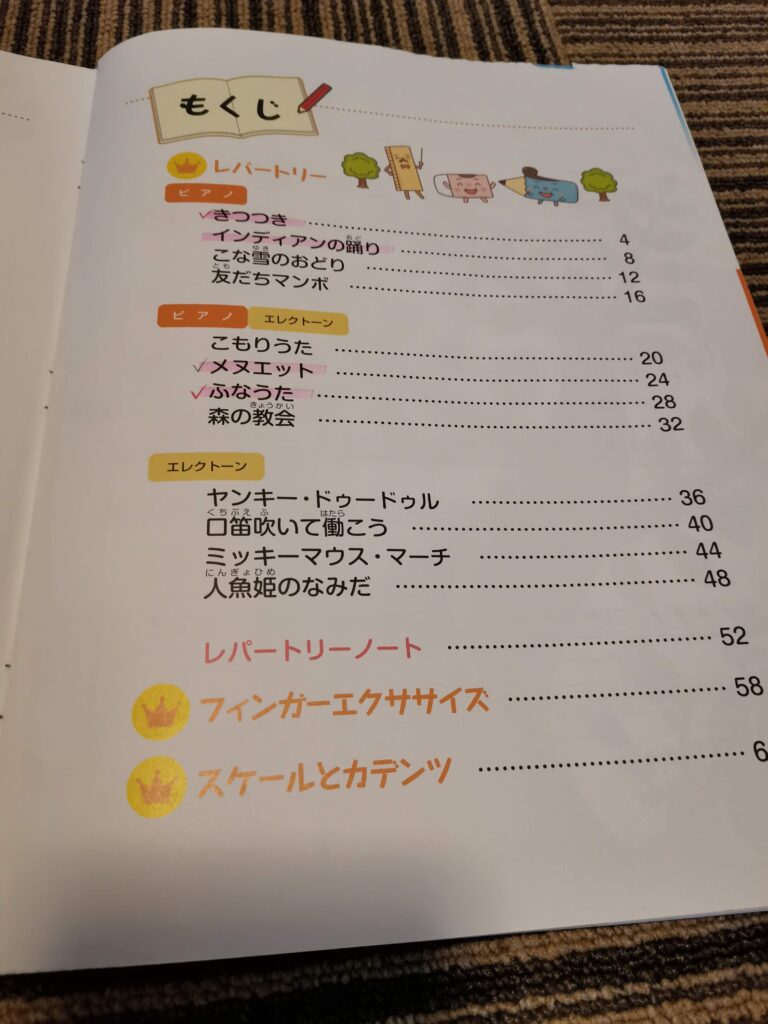 ちなみに最近やっているのは「ジュニア4」教本ではの「いのりのうた」「コロブチカ」「ゆかいなポルカ」「カナリアの歌」です。