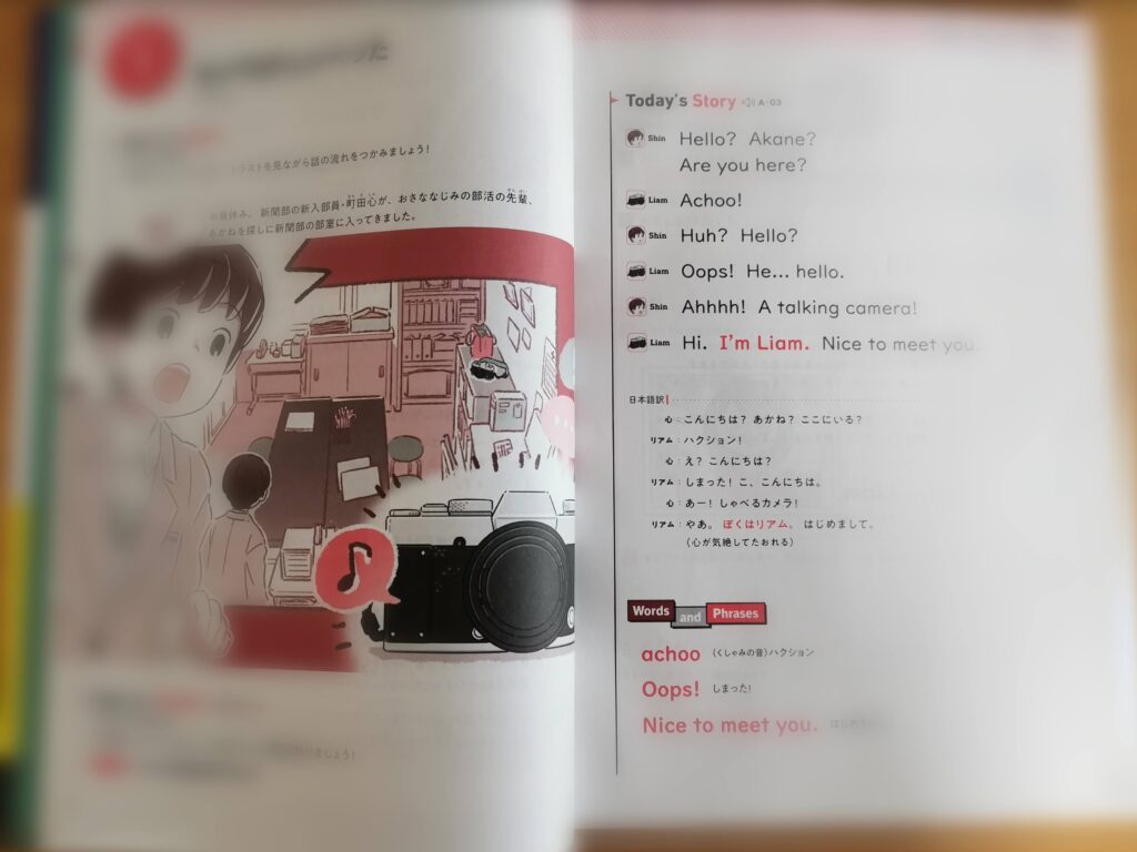 ↓「中学生の基礎英語1」の4月号テキストはこんな感じ。お勉強っぽさが強くなります。
