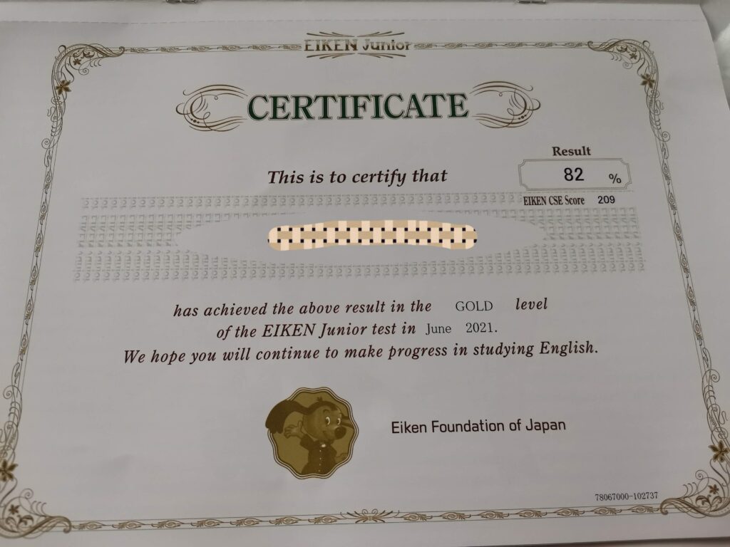 6月に通っている民間学童内で英検ジュニアの「ゴールド」を受け、先日やっと結果が届きました。