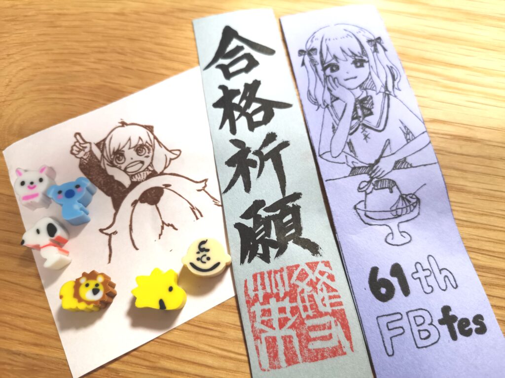言葉は「合格祈願」とか、「恋愛成就」とか選べて、裏面に自分の下の名前を書いてもらえます。