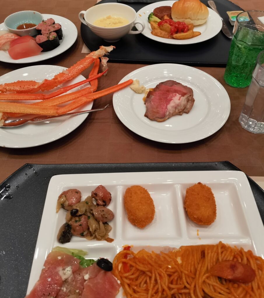 食事はホテル内で完結させたかったので、朝夕食のバイキング付きにしました。