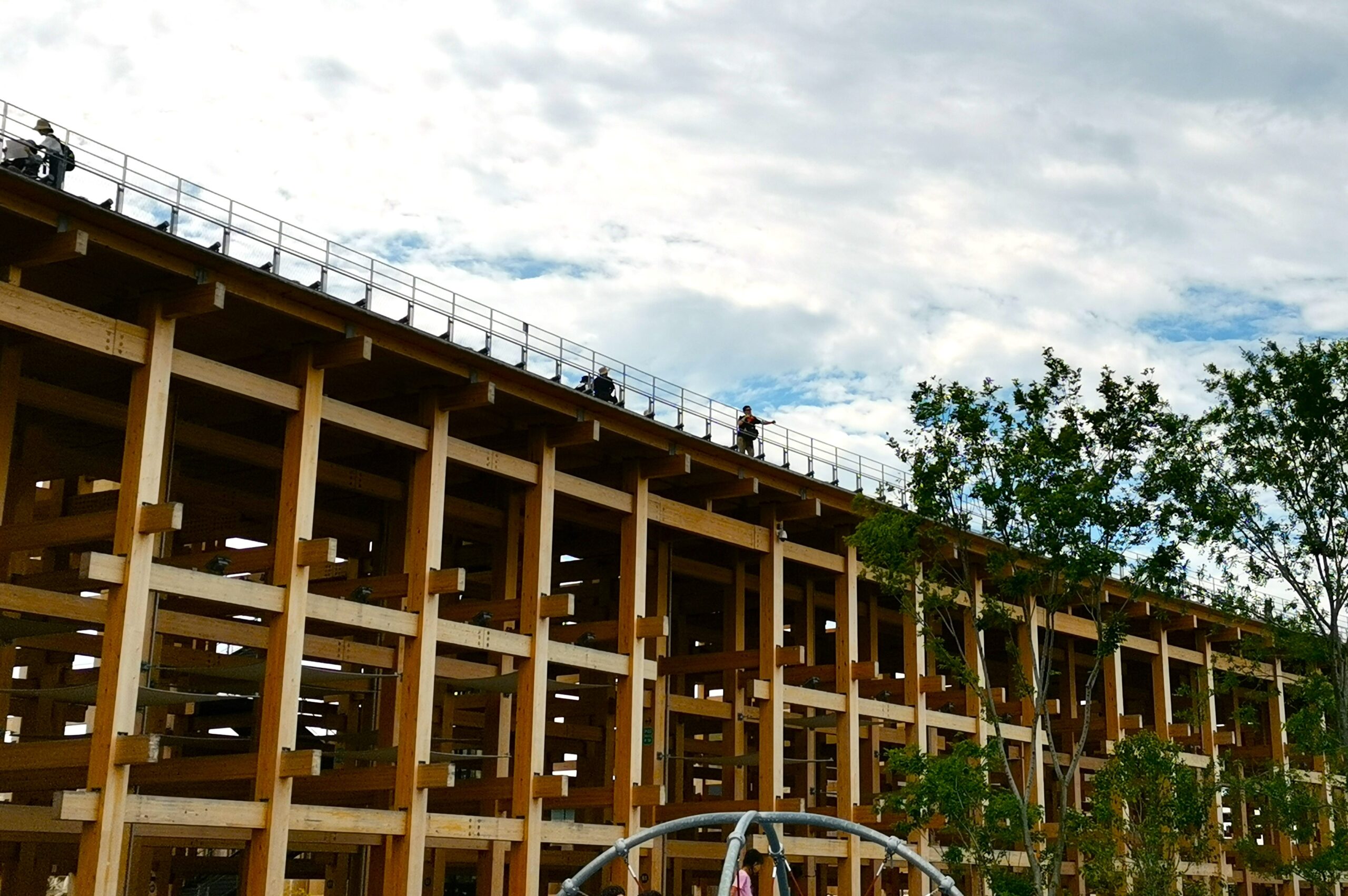 (写真は大屋根リング、圧倒的な造形美とともに、広い場内の移動ショートカットとしての実用性もありました。)