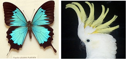また美しい青い蝶(英名ユリシスulysses、和名キバタン)が舞っていたり、白い体と頭の黄色い色が特徴的なオム(和名キバタン、英名サルファークレスト・コカトゥー)も見ることができ、それらの説明もありました。