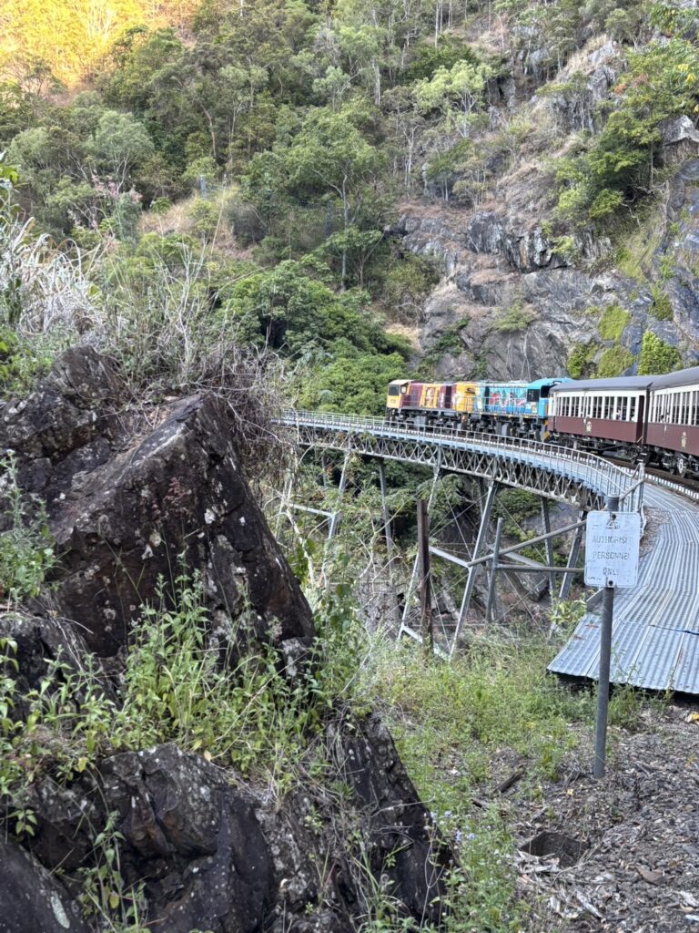 この熱帯雨林にある、観光で有名な村キュランダに行くには、スカイレールという「ケーブルカー」か、キュランダ・シーニック・レールウェイという「鉄道」が観光客には一般的だそう。どちらも同じ会社が運営しているようです。もちろんケアンズ市内から車でも行くことができます。
