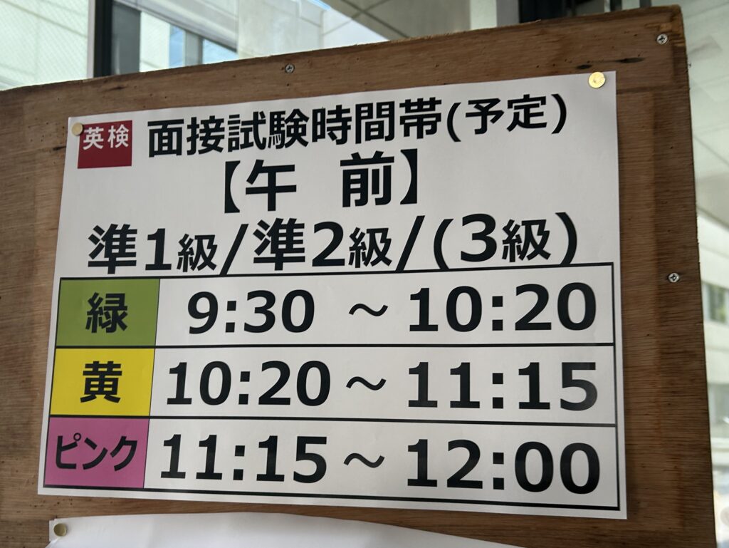 英検協会から英検1次合格の紙の結果とともに、2次試験の受験票(会場・時間も書かれている)が2次の約2週間前に届きます。